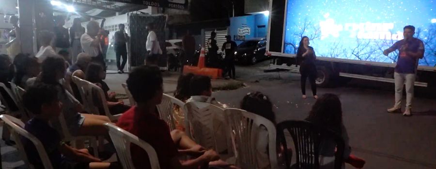 Talvez muitas delas ainda não tivessem assistido a um filme numa sala de cinema. As crianças que se aglomeravam ao lado de um caminhão, no bairro de Catingueira, Campina Grande (PB), estavam frenéticas, esperando a sessão começar. “Tio, é cinema?”, me perguntou um garoto de seis ou sete anos. Respondi que sim. Deve ser estranho, para uma criança desta idade, que a sala de cinema se desloque até o seu bairro — e mais estranho ainda, que as exibições ocorram na lateral de uma veículo.