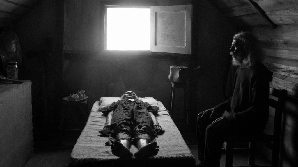 Demonstra-se, desta maneira, o prazer da composição e do controle. Seja pelo som limpíssimo das duas amigas conversando em meio à ventania, ou pelo enquadramento de mãe e filha sentadas em lados opostos da longa mesa, coroadas por minúsculos quadros posicionados imediatamente acima de suas cabeças, Cariry gosta de criar mundos, embelezando ao máximo a fragilidade psíquica das duas. Mesmo que a casa esteja em pedaços, ela ainda é observada pela câmera como o castelo sonhado pela mãe. Enquanto isso, um capacete de escafandro alude ao homem que nunca retornou do mar. As fotos de baleias na parede remetem a uma comunhão impossível com a natureza. O roteiro prende estas mulheres à propriedade (Marcélia Cartaxo nem sequer visita as partes externas), porém denota o pensamento em lugares distantes.
