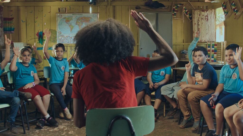 Em contrapartida, a obra se mostra menos eficaz em momentos mais claramente roteirizados, quando as falas soam pouco orgânicas na boca dos atores, e a câmera se mostra travada, sem saber ao certo como se posicionar diante do elenco e dos espaços. Todo o despojamento dos bailes luminosos desaparece na conversa engessada dentro do ônibus (“Aceita uma bala?”), e mesmo no discurso formatado demais do pai ao final. O artifício mais aceitável ainda será aquele assumido enquanto tal — no caso, a narração infantil/animal da criança reflexiva, transitando entre gerações.