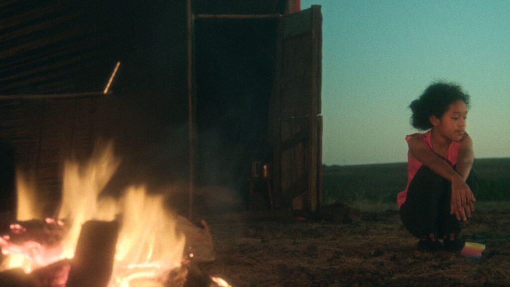 O curta-metragem certamente pode ser descrito como sonhador — mas não ingênuo. O diretor Maikon Nery contrasta o ponto de vista da criança, brincando com os colegas no território onde morava, a cenas brutais do ataque ao pai. Entre os dois, existe este imaginário de uma fantasmagoria paterna, que surge à distância, sem rosto, nem falas. A figura adulta e masculina cerca a pequena Joana na condição de uma sombra da qual ela não pretende se afastar. Demoramos, inclusive, a compreender que se trata de fato do pai, humanizado ao longo da narrativa. Sua única conversa, de fato, surge no final, quando assume a função de um guia para o futuro da garota.