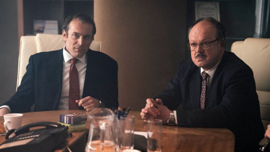 Em consequência, estes heróis permanecem a uma distância considerável do espectador. Como poderíamos nos identificar com os homens que mal conhecemos? Caso, de fato, sejam destruídos pela repercussão do artigo de jornal, do que abrirão mão na cadeia? Amam muitíssimo a esposa, a amante, os filhos, suas posses? Nunca compreendemos sua rotina, nem seus desejos ou gostos, a ponto de deduzir o que a decadência implicaria para ambos. Eles possuem desculpas simplórias aos crimes (“Todo mundo sabia”, “Eu só queria colocar essa região no século XXI”), em chave infantil. Em contrapartida, nem mesmo pensam em articular uma resposta à altura junto à equipe de advogados.
