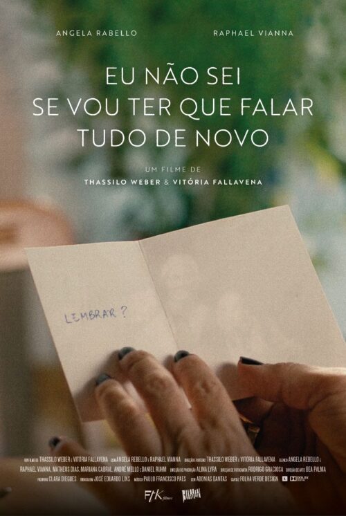 Os atores apresentam prestações distintas: ele opta por um registro internalizado, de voz pouco projetada — tão delicada quanto minimalista. Já ela exterioriza a desordem mental nos gestos com as mãos, no olhar fugidio, nas tentativas de se recompor, no curso ao caderno de memórias que carrega consigo. O corpo se move e agita com frequência, algo reforçado pela insistência nos close-ups. A presença da palavra “Lembrar?”, escrita no verso de uma fotografia, talvez busque certo lirismo, embora somente reforce aquilo que o filme vinha trabalhando com maior sutileza até então. Pode soar graciosa à primeira vista, porém, aparenta inverossímil naquele contexto.