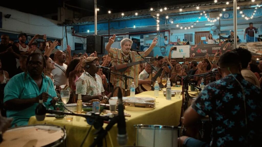 Por isso, a câmera se posiciona junto à mesa no bar, em frente à roda de amigos na feira, ou no beco onde o personagem pede sua bênção a Pixinguinha. Ninguém se sente obrigado a abordar nenhum tópico em particular, seja para rememorar a trajetória do artista, seja para cumprir com pontos previstos pelo roteiro. A diretora Tarsilla Alves decide adaptar generosamente a sua câmera ao mundo do biografado — nunca o contrário. Ela frequenta os espaços importantes para ele, e se aproxima das pessoas que atravessaram sua vida. Então, capta a interação bastante espontânea que ocorre entre as duplas e trios.