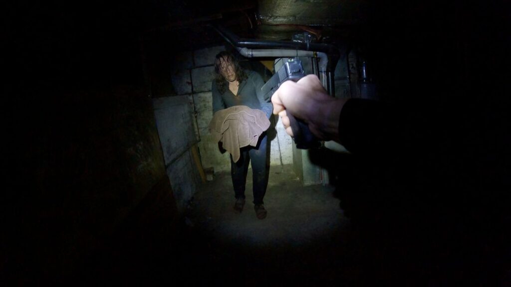 Logo, não há causa, nem consequência; não há origem, nem antídoto para a criatura. Trata-se de um mecanismo muito simples de predador e caça, no qual as regras são criadas durante a perseguição, tal qual ocorreria no faz de conta de crianças pequenas. Esqueça qualquer reflexão política a respeito da violência policial, da relação com comunidades vulneráveis, da ilusão da imagem enquanto prova de verdade em tempo de IA e fake news. Nada disso interessa a Brandon Christensen, disposto a abraçar incontáveis clichês do found footage (a pessoa de costas contra a parede, tal qual A Bruxa de Blair) e os diálogos mais desgastados da pseudo psicologia (“Acha que Deus se importa? Acha que ele me perdoará?”). Além disso, ele recorre a infinitos corredores escuros e câmeras tremidas na tentativa desesperada de gerar desconforto — o que não equivale a significado, valor ou interesse.