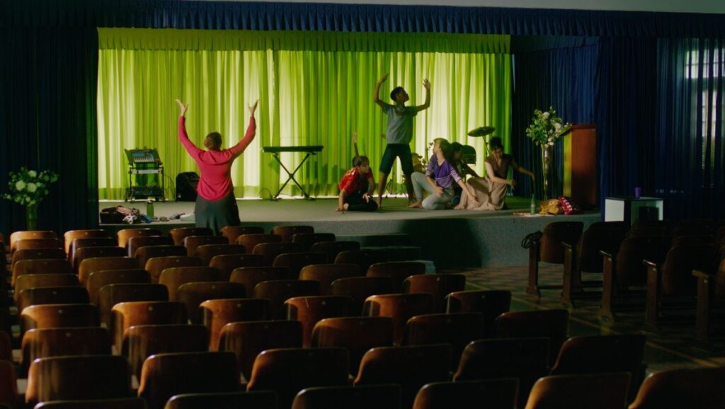 Para apresentar o fato que Samuel (Pedro Lucas) é gay, o menino é visto, desde a cena inicial, se maquiando em frente ao espelho. Para introduzir a homofobia dentro de casa, coloca-se um pastor evangélico na função paterna. Sabemos que o homem tem vergonha do filho, porque ele assim o diz. Compreendemos que o menino perdeu a mãe, porque menciona o luto ao pai (e ao espectador). Entendemos que se sente culpado pelo falecimento dela (uma mulher mais acolhedora e tolerante, aparentemente), porque o menino também o verbaliza.