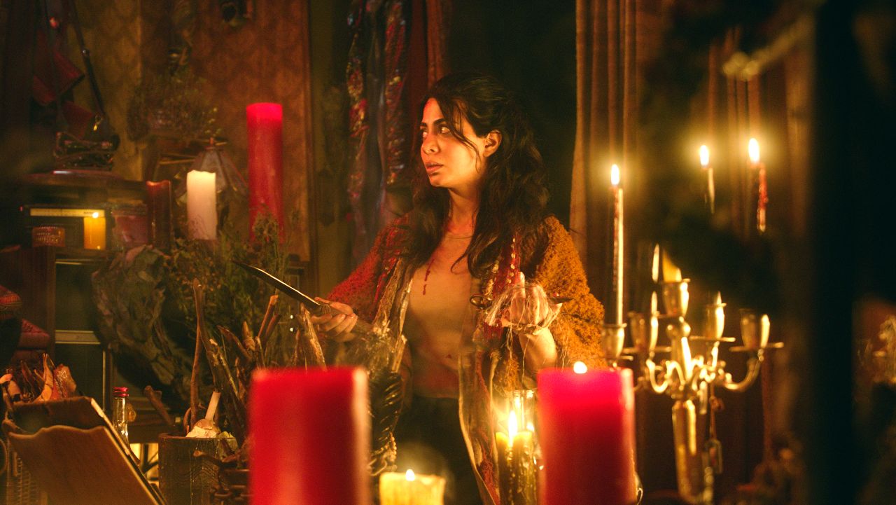 Além disso, a decisão de colocar a jovem sozinha em cena durante metade da trama tampouco ajuda a direção. Precisando transmitir diversas informações ao espectador, e sem encontrar um interlocutor para as demandas da protagonista, Vargas solicita à atriz que verbalize seus pensamentos em voz alta. “Só o caldeirão pode quebrar a maldição!”, ela conclui, sem nenhum indício para tal. “Que comece a sangria!”, ela festeja sozinha. “Onde coloquei aquele livro de feitiço?”, questiona. “Vou te prender ao corpo da minha avó”, ela explica ao objeto inanimado. Trata-se de recursos paupérrimos de roteiro, sobretudo considerando que o projeto contava com um excelente ator, David Dastmalchian, no papel do vizinho com quem a heroína poderia desenvolver interações dignas de interesse. No entanto, o pobre Joe se limita a clamar por uma AirFryer emprestada.