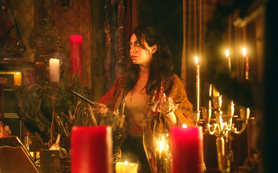 Além disso, a decisão de colocar a jovem sozinha em cena durante metade da trama tampouco ajuda a direção. Precisando transmitir diversas informações ao espectador, e sem encontrar um interlocutor para as demandas da protagonista, Vargas solicita à atriz que verbalize seus pensamentos em voz alta. “Só o caldeirão pode quebrar a maldição!”, ela conclui, sem nenhum indício para tal. “Que comece a sangria!”, ela festeja sozinha. “Onde coloquei aquele livro de feitiço?”, questiona. “Vou te prender ao corpo da minha avó”, ela explica ao objeto inanimado. Trata-se de recursos paupérrimos de roteiro, sobretudo considerando que o projeto contava com um excelente ator, David Dastmalchian, no papel do vizinho com quem a heroína poderia desenvolver interações dignas de interesse. No entanto, o pobre Joe se limita a clamar por uma AirFryer emprestada.