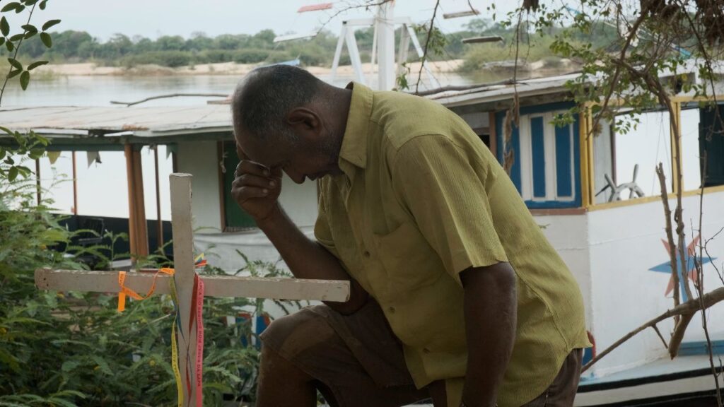 Desde as primeiras cenas, Sede de Rio alterna entre dois registros praticamente opostos. Primeiro, abraça uma construção poética próxima da performance. O protagonista, Nitercílio Ferreira de Morais, está deitado sobre a terra, com o rosto e o corpo encobertos pela lama. Num corte da montagem, o sujeito é equiparado a um peixe fora d’água, agonizando em terra firme. O diretor Marcelo Abreu Góis intervém na natureza, criando cenas poéticas através da ficcionalização. Ele molda a paisagem para desenvolver as metáforas desejadas — logo, o meio se ajusta às necessidades da câmera.