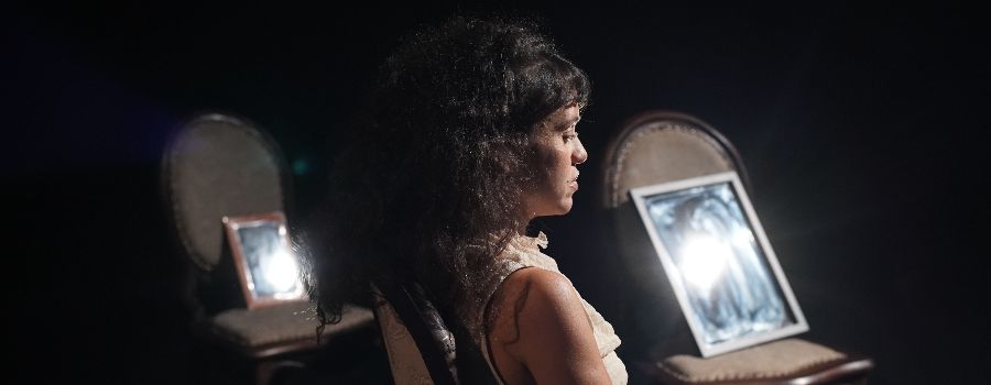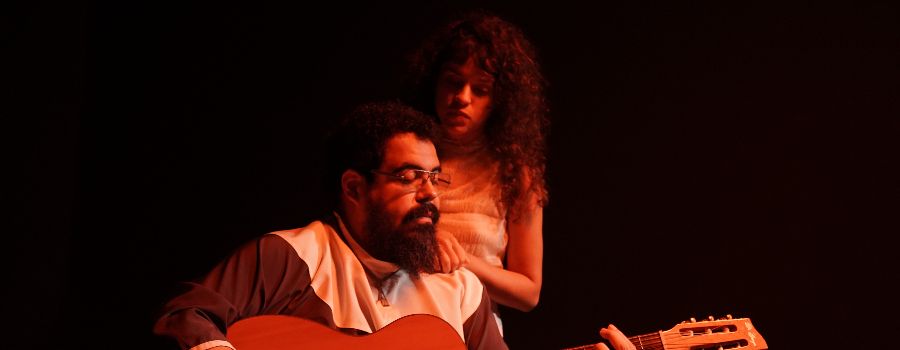 Letícia Simões: A gente trabalhou muito tempo em cima do roteiro de 75 páginas. Desde sempre, construímos a ideia de que seriam registros de atuação diferentes. Com a Guga, a gente trabalhou muito a questão da intimidade, da fragmentação. Como é trabalhar com um personagem que efetivamente falece do mal de Alzheimer, ou seja, de um mal de lembrar-se? O texto da Guga já tinha essa característica fragmentada, mas a gente foi trabalhando um pouco mais as pausas, e o lugar dessa narradora que coloca o avô no colo, ou seja, que acolhe o avô para provocar essa memória.