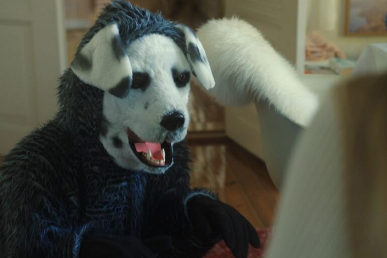 Um milionário tem como bicho de estimação um ser humano vestido de cachorro.